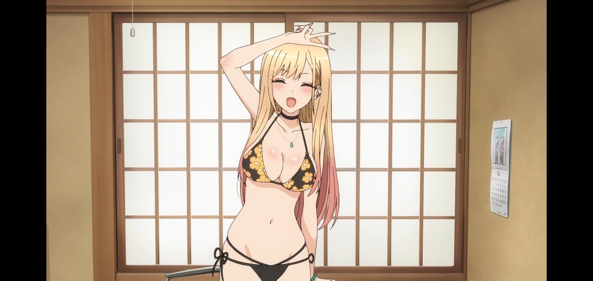 - 原作やアニメでは「採寸する際は下着でなければならない」という理由から五条が恥ずかしがって採寸を断ろうとするが、海夢が水着を着て来る