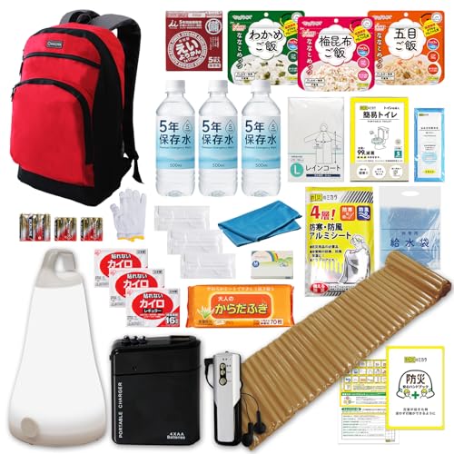 防災のミカタ 防災グッズ セット リュック 1人用 45点 赤 非常用リュック 【日本防災ブランド】 大容量リュック 非常用 簡易 トイレ 保存食 保存水