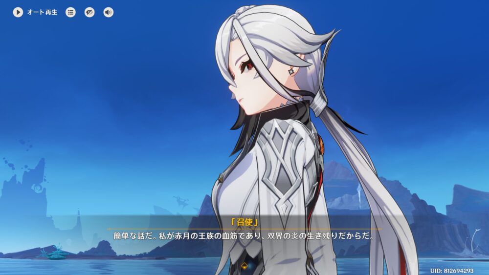 既にキャラストーリーや武器の説明文などで明かされてたような物でしたが、召使が赤月王族の血筋であった事を明言していました。