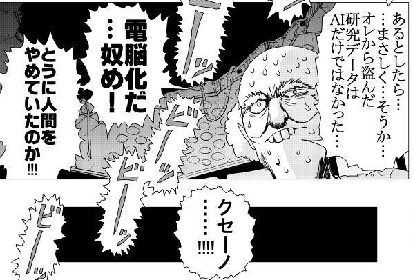 ボフォイ博士が話しているだけで現在のクセーノ博士の様子が全く描かれていない事、過去のクセーノ博士は心の声まで描かれていたが怪しい言動は一切無かった事、サイタマと同居していたジェノスを弄り放題だったクセーノ博士が作ったであろう機神シリーズがサイタマについて情報を把握していなかった事などなど・・・黒幕にしては辻褄が合わない点が多々あります。