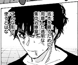 - 匿うための透明な集中治療室のせいで坂本が来ることがバレる本末転倒っぷり